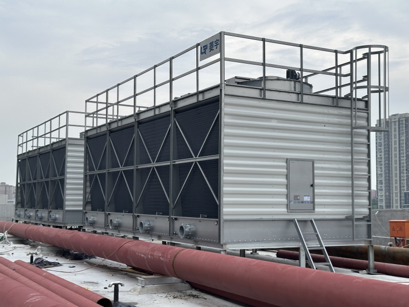 河南省平顶山市菱宇冷却塔客户采购了菱宇方形横流组合式钣金冷却塔,客户是一个商业中心,需要给自己的中央空调系统降温,对于冷却塔的要求需要变流量的高效冷却塔产品,这是因为客户现场高效机房中央空调系统的冷凝温度要求35度降到30度,面对这样的一个要求,河南菱宇方形横流式钣金冷却塔是比较合适的选择。